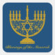 Square sticker with an image of a golden menorah and optional text on royal blue. See matching custom-cut vinyl sticker, invitation, label, confetti and wrapping paper. See the entire Hanukkah Sticker collection under the CARDS & STICKERS category in the HOLIDAYS section.