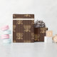 Here we have a wrapping paper that features a golden menorah on a light brown and dark brown vertical striped background. This paper is available in multiple sizes and is a match to other wrapping papers, tissue papers, gift bags and a greeting card. This is sure to make a perfect addition to your gifts this holiday season.