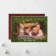 An attractive and eye catching Christmas card with your family photo highlighted by a frame of Christmas tree branches. Sparkling gold Merry Christmas along the top and your names near the bottom. Backside features a repeating pattern of the gold Merry Christmas against a dark red.