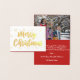 Golden Merry Christmas Script Foto Hearts Snow Foil Card