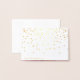 Delicate simple elegant seasonal folded Christmas Holidays greeting card with optional photo. Decorated by snow made with confetti hears and delicate golden foil Merry Christmas script.
