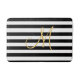 Golden Monogram on solid black and white stripes Bath Mat