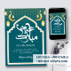 Kartu ucapan mewah dengan bingkai berbentuk gerbang masjid berwarna emas, dikelilingi oleh lentera dan bulan sabit. Bagian tengah yang luas sangat sempurna untuk menuliskan pesan panjang atau nama keluarga.