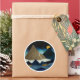An abstract landscape with unique colours and textures showing a nigh time mountain scene with the glowing lights of climbers and a moon in shades of blue, gold, cyan, and yellow.