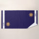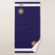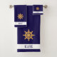 Elegant golden nautical wheel on navy blue Bath Towel Set. Text can be personalised.