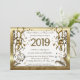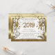 These golden New Years Eve wedding invitations ring in 2019 while celebrating your love! Faux glitter, confetti, streamers, feathers and even a festive clock are all beautiful graphics arranged artfully around your text (printed flat onto your design, nothing is raised or mounted). Change all the wording to suit your own 2019 occasion for any event as needed.