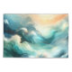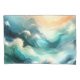 Soft flowing waves in rich teal and turquoise tones blend seamlessly with warm golden light.