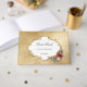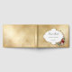 Create an unforgettable winter wedding with this elegant holiday guest book design featuring a lush spray of Christmas roses, poinsettia, holly and pine, white label with an ornate gold border and an opulent faux metallic gold gradient damask pattern background. Includes three editable text fields.