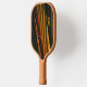 Feel the Tropical Vibes of an abstract designed Pickleball paddle of gold, black and orange that is actually the photographic image of palm fronds that is bright, bold and edgy.