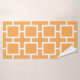 Vibrant golden orange and white towel set featuring a white geometric square pattern on an orange coloured towel