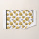 A Gold And Black Bath Towel Set Patterned In Golden Orbs And Black Leaves On White