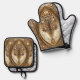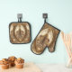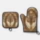 Beautiful Golden Ornate Oven Mitt & Pot Holder Set