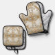 Beautiful Golden Ornate White Flowers Oven Mitt & Pot Holder Set