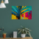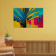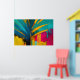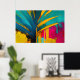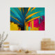 This vibrant abstract artwork channels the bold spirit of the tropics through sweeping palm-like forms and high-contrast colour. Deep teal and ocean blue leaves slice dramatically across a radiant background of gold, magenta, turquoise, and warm yellow, creating a sense of movement, heat, and sunlight. Expressive brushstrokes, drips, and textured layers give the piece a raw, energetic character that feels alive and unapologetically modern.