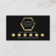 Coordinates with the Golden Palms Spray Tanning Salon Logo on Black Business Card Template by 1201AM. A modern and simple logo of palm leaves are silhouetted within a hexagon shape containing your name or business name on this customisable loyalty card template. Set on a black background for a glamourous aesthetic. Perfect for tanning salons, waxing salons, tropical or coastal beauty salons/spas, and more. Update the promotion for your own unique offering. Art and design © 1201AM CREATIVE