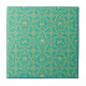 Golden Pattern with Turquoise Background Ceramic Tile.