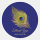 Golden peacock feather Thank You on Navy Blue Classic Round Sticker