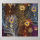 Seamless bright pattern of different golden peacock feathers on a dark background. Example of a gold feather pattern for a website or fabric