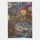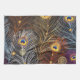 Seamless bright pattern of different golden peacock feathers on a dark background. Example of a gold feather pattern for a website or fabric