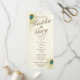 Elegant golden peacock feather design printed rack card wedding programs with brown text.