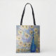 A beautiful peacock adorns this sturdy tote bag. Inspired by an original layered mixed media painting by Judy Sorrels, it features vivid teal and gold, with texture.