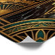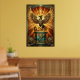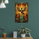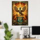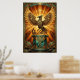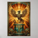 A magnificent phoenix rising from a pedestal with radiant sunbeams. Bold orange, gold, and teal colors in a classic 1920s poster style.
