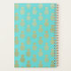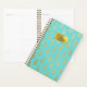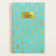 Stylish daily / monthly planner done in turquoise with a golden pineapple pattern. Graphics of a gold tone plaque, on the front of the planner, has turquoise custom text ready to personalise.