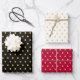 Golden Polka Dots Confetti on Black, Red & White Wrapping Paper Sheet