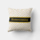Chic throw pillow with beautiful gold metallic look polka dots on black and white background. Homecoming can be personalised. Home and family are our true treasure!