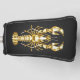 Golden, shiny, lobster drawn in polygonal, geometric style on black background. Gold lobster.