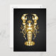 Golden polygonal lobster crawfish on black holiday postcard