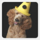 Golden Poodle Dog wearing a yellow clown hat Square Sticker