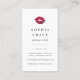 Elegant vertical business card design for makeup artists or beauty industry professionals features classic black lettering on a golden ombre background adorned with strands of faux gold foil string lights. Personalize with two lines of custom text on the front beneath a vibrant pink lip print kiss illustration, and add your full contact information to the reverse side.