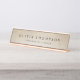 Elegant desk nameplate features classic black lettering on a golden ombre background adorned with strands of faux gold foil string lights. Personalise with your name and title or business name.