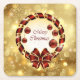Golden & Red christmas Wreath with Bow & Snowflake Square Paper Coaster