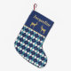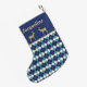 This design features a navy blue, turquoise, and gold argyle pattern - not too different form socks and sweaters - with two reindeer and the recipient's name in gold. This stocking, with its festive blue pattern and golden reindeer, might be just the right stocking to ring in Christmas.