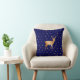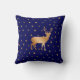 Golden reindeer silhouette and stars on navy blue Throw Pillow.
