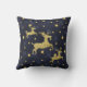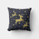 Decorate for Christmas with our Beautiful and Vibrant Square Throw Pillow Featuring Golden Reindeer & Stars Midnight Blue Design