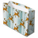 Golden Reindeers on Pale Aqua Christmas Large Gift Bag