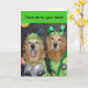 This card features golden retrievers dressed as fun and silly aliens in outer space. The text reads, "Take me to your cake!" and "Happy Birthday Earthling!".