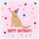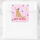 Golden Retriever Birthday Pink Background Bubbles Square Sticker
