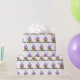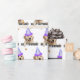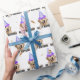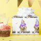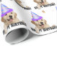 Cute golden retriever with birthday party hat and gold confetti on white background.