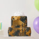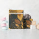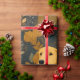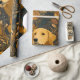 A golden retriever peeking through dark botanical foliage in warm earthy tones. Dog lover gift wrap that actually looks good.