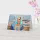 This bon voyage card features a golden retriever dressed as a nautical fairy, covered with shells, and holding a wand spelling out Summer. The text reads, “Bon Voyage!” and “Hope your trip is just BEACHY!”.