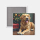 Golden Retriever by the Toy Train Christmas Magnet