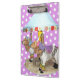 This clipboard features golden retrievers dressed as carousel horses on a carousel.