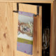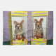 This kitchen towel features golden retrievers dressed as chocolate rabbits in boxes. This is perfect for Easter or for an Easter gift.
