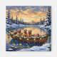 Bring cheerful, friendly charm to your holiday season with this heartwarming Golden Retriever Christmas design! This magical scene features three happy, beloved Golden Retrievers sitting contentedly in a cozy wooden boat, gently floating on a serene snowy lake at sunset. The boat is beautifully adorned with glowing Christmas string lights and fragrant pine garlands, while the dogs wear festive scarves. They are surrounded by colorful wrapped presents and cheerful holly branches. Soft snowflakes gently fall, and the shimmering reflection of the lights on the water creates a truly magical winter holiday atmosphere. This design is a perfect Christmas gift for any Golden Retriever owner, dog lover, or admirer of festive and devoted sporting dog art, capturing the serene joy of the season.