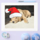 adorable golden retriever puppy wearing a Santa Hat