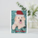 A Golden Retriever puppy wearing a Christmas Santa hat.